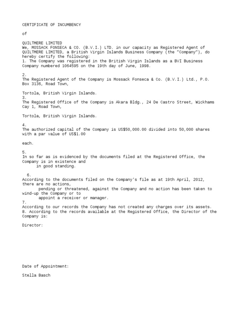 Difference Between Certificate Of Good Standing And Certificate Of Incumbency - Opening A Bank Account Hague Apostille Service : This document is a kind of confirmation.